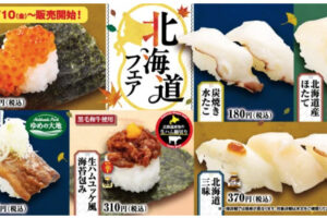 魚べいと元気寿司は2025年10月10日より「北海道フェア」を開催します。 フェア商品 ・秋鮭いくら海苔包み/1貫350円(税込) ・炭焼き水たこ/2貫180円(税込) ・北海道産ほたて/1貫150円(税込…