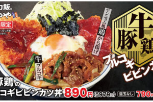 かつやは2025年10月10日より「牛豚鶏のプルコギビビンカツ丼」を期間限定で販売します。 「牛豚鶏のプルコギビビンカツ丼」は、玉ねぎやニラと共に甘辛く仕上げた牛肉の「プルコギ」、ヤンニョムソースで仕立てた「ヤンニョム風…