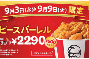 ケンタッキーは2025年9月3日〜9日の期間、お得な「カーネルズデー9ピースバーレル」を発売します。 KFC創業者のカーネル・サンダースの生誕135周年を記念して、お得なバーレルを発売です。 「カーネルズデー9ピースバー…
